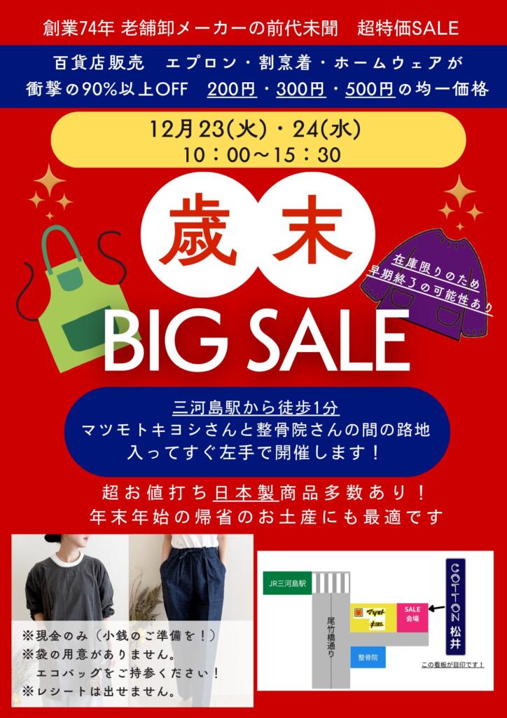 COTTON 松井歳末BIG SALE 川村 大 2025年12月18日 0 カレンダー カレンダーに追加 Timely カレンダーに追加 Google に追加 Outlook に追加 Apple カレンダーに追加 他のカレンダーに追加 XML ファイルとしてエクスポート 日時: 2025年12月24日 @ 10:00 AM – 3:00 PM 2025-12-24T10:00:00+09:00 2025-12-24T15:00:00+09:00 セール 三河島 創業74年のキッチン・ホームウェア卸の老舗、松井商店が歳末BIGSALEを開催 会場は三河島駅徒歩1分のCotton松井です。 200円、300円、500円の均一価格。 <セール情報> 会場:Cotton松井 住所:東京都荒川区東日暮里3丁目40−6 コットン松井 営業時間:12/23, 12/24 10:00~15:00