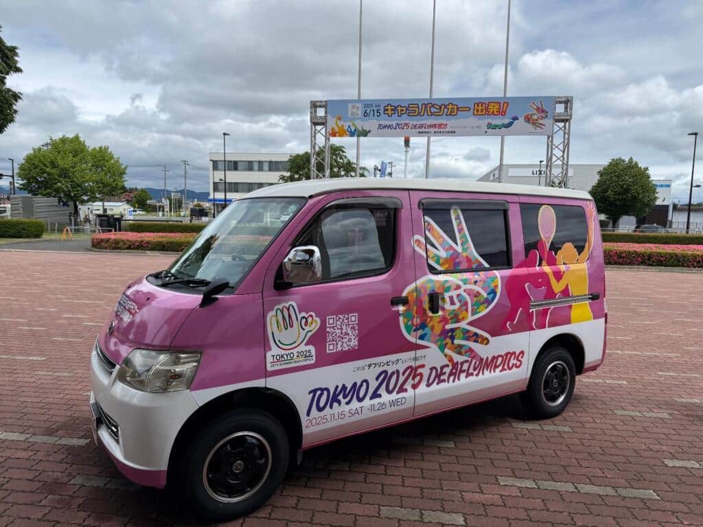 デフリンピックを盛り上げるため、大会都市である東京都を目指して北と南から2台のデフリンピックPRキャラバンカーが日本全国を巡回中です。