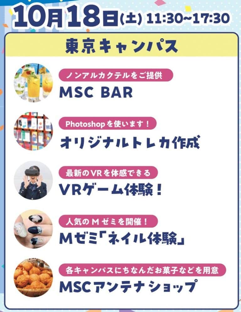 また、MSC祭のポスターイラストも在校生からの公募により決定しました。「この瞬間に」のテーマからカメラを連想し、瞬間を切り取る表現をしてくれています。