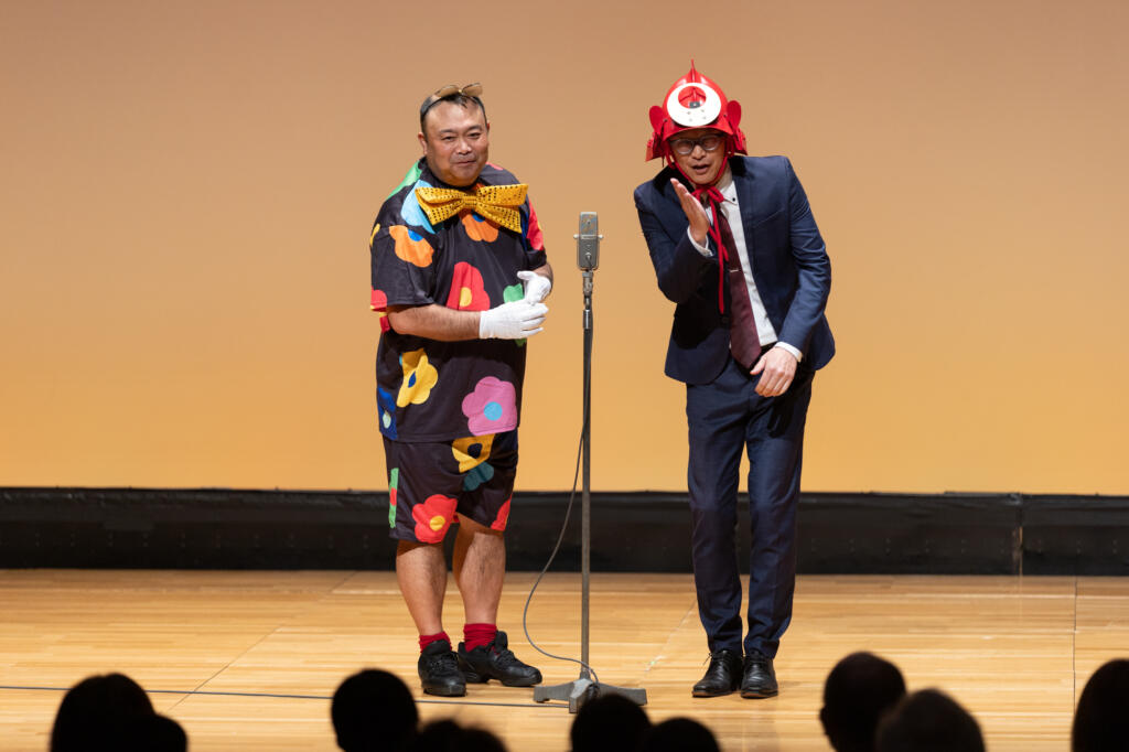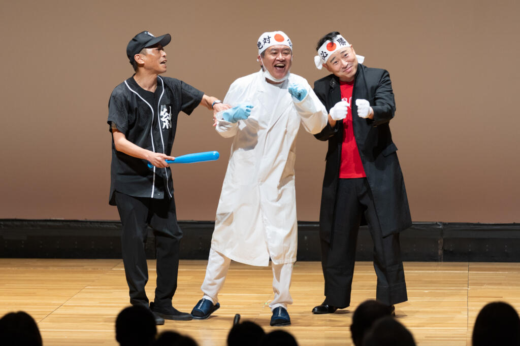 漫才、コントをはじめとした、さまざまな芸とともに進行した舞台は、ボリューム満点のエンターテインメントでした。