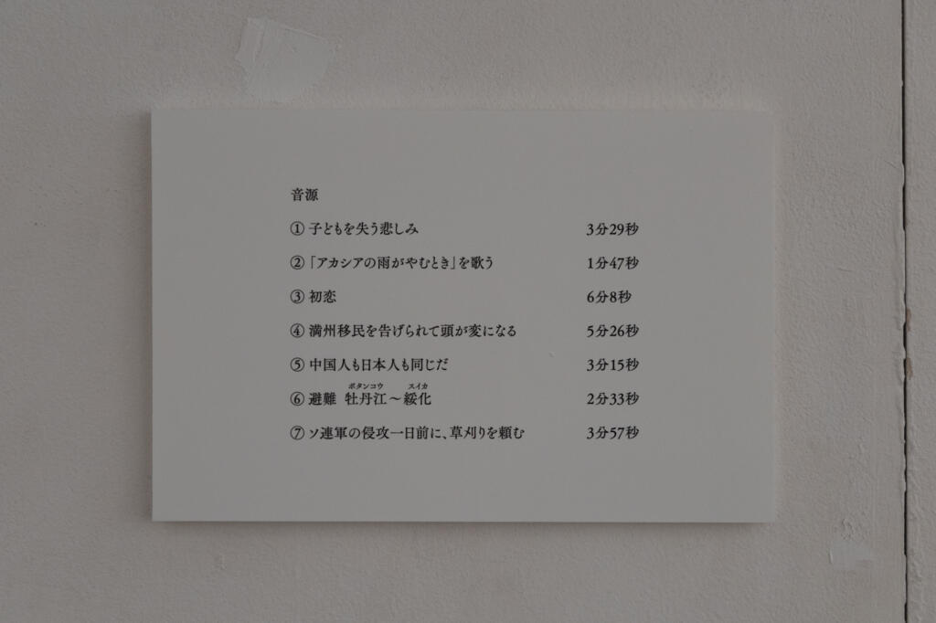 本展は写真とあわせて、インタビュー時にカセットテープに録音された絹さんの肉声、そして絹さんの人生と戦争体験をまとめた小冊子を通じて、その人生を旅する構成です。