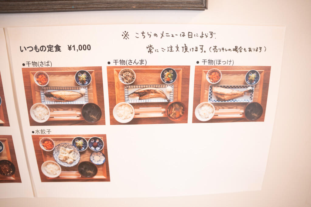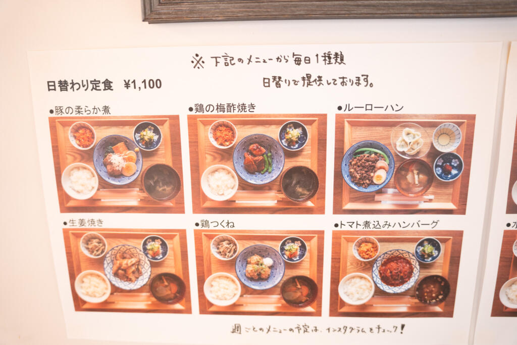 定食メニューは、「日替わり定食」と「いつもの定食」の複数の中から選ぶことができます。日替わり定食は隔週曜日によって違います。インスタで週ごとに日替わりメニューが告知されているので、食べたい定食がある人は要チェックです。