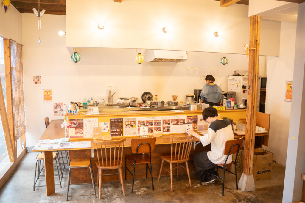 木造の見た目ながら、ガラスで店内がうかがえる、おしゃれながらアットホームを感じる見た目の場所です。