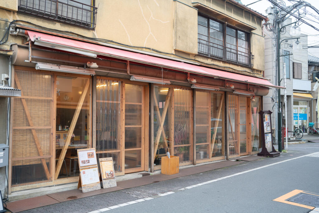 西尾久には大きな一本の商店街があります。おぐセンターはその商店街の中心で、通り沿いにあります。センターというと無骨な建物を想像してしまうかもしれませんが、「おぐセンター」の見た目はお洒落な今風のカフェ。